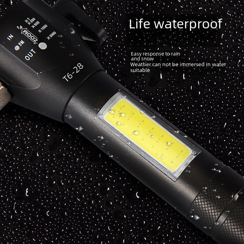 Cross-border T6 wilderness survival fire rescue car safety hammer flashlight LED outdoor charging strong light window breaker