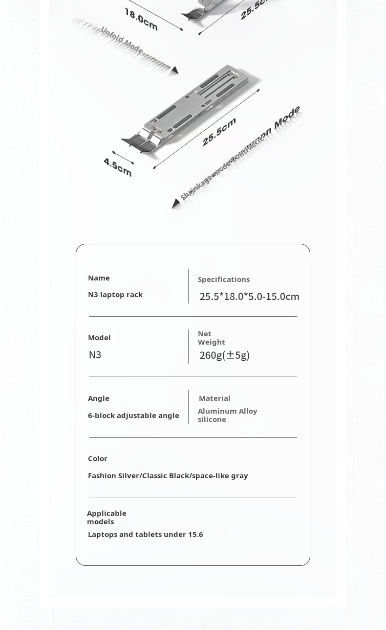 N3 Laptop Stand Foldable Lifting Portable Base Cooling Bracket Desktop Vertical Aluminum Alloy Computer Stand