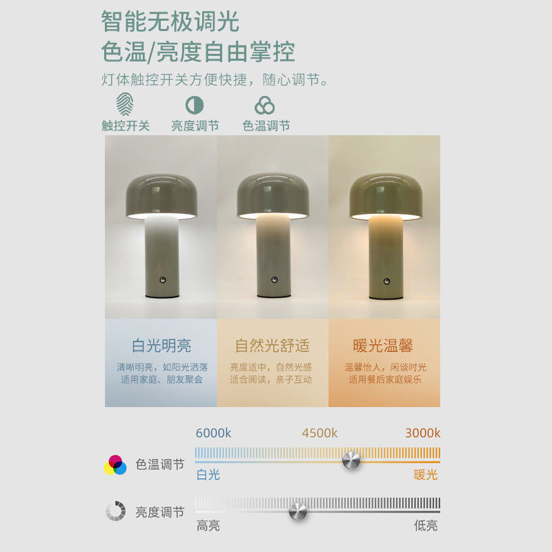 Nordic creative mushroom table lamp bedroom bedside LED night light USB charging touch atmosphere table decoration table lamp