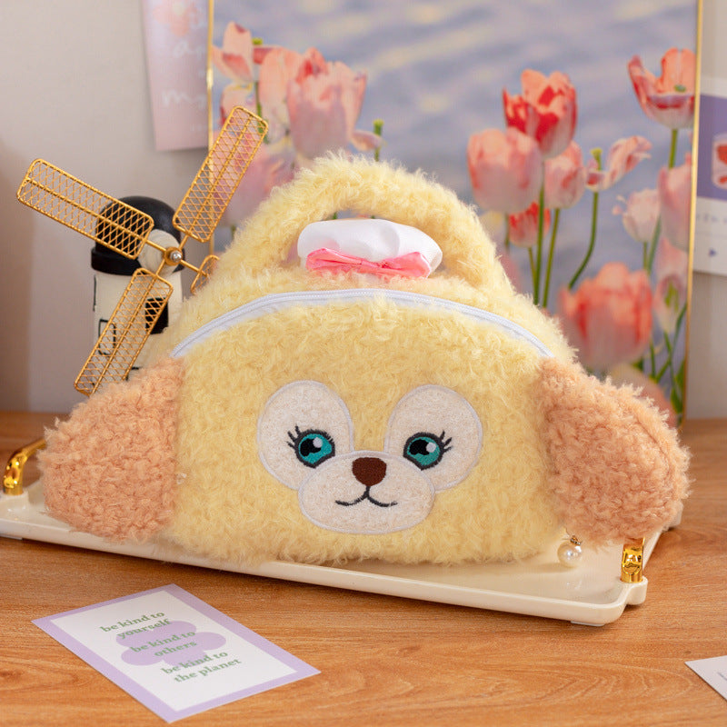 Soft cute chef dog plush makeup bag, large capacity, super cute girl's heart, plush storage bag, travel handbag