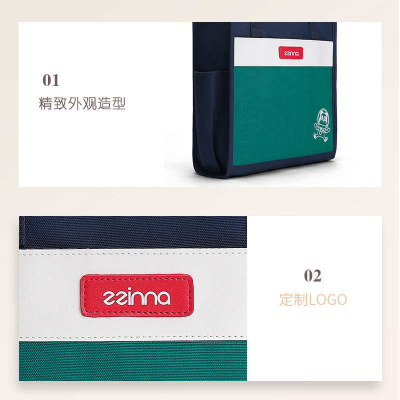 ZZINNA Kids Elementary School Student Tutoring School Bag Cartoon Cute Girl Canvas Handbag Light Tuition Bag Wholesale
